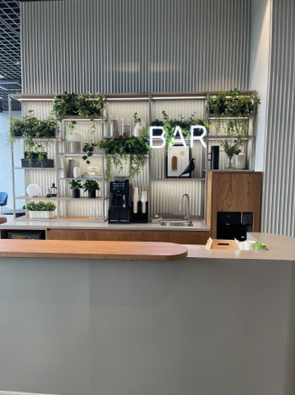 공간 좌측에 BAR도 예쁘게 마련이 되어 있었습니다. 작은 카페 같은 모습에 기분이 좋아지더라고요.
