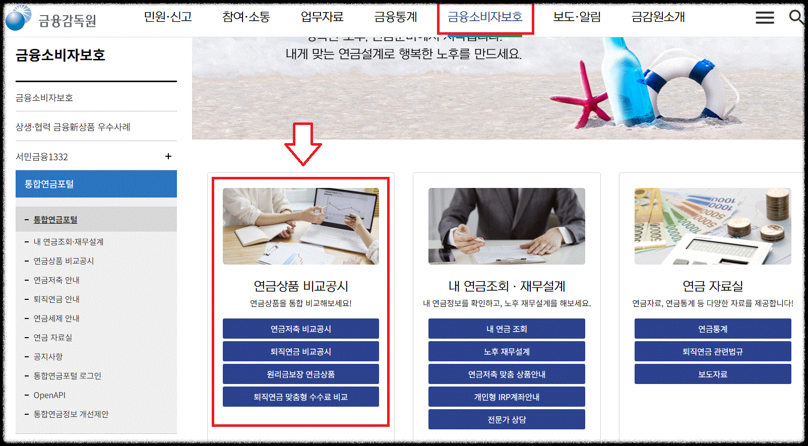 통합연금포털의 '금리 비교공시' 활용