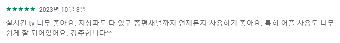 ▶ 어플만 다운로드하시면 이제는 언제 어디서나 빠르고 간편하게 장소에 제약 없이 실시간 TV채널들을 즐기실 수 있습니다. 장소 제약 없이 어디서나 볼 수 있는 유튜브나 OTT처럼 TV채널도 언제 어디서나 즐기실 수 있습니다.