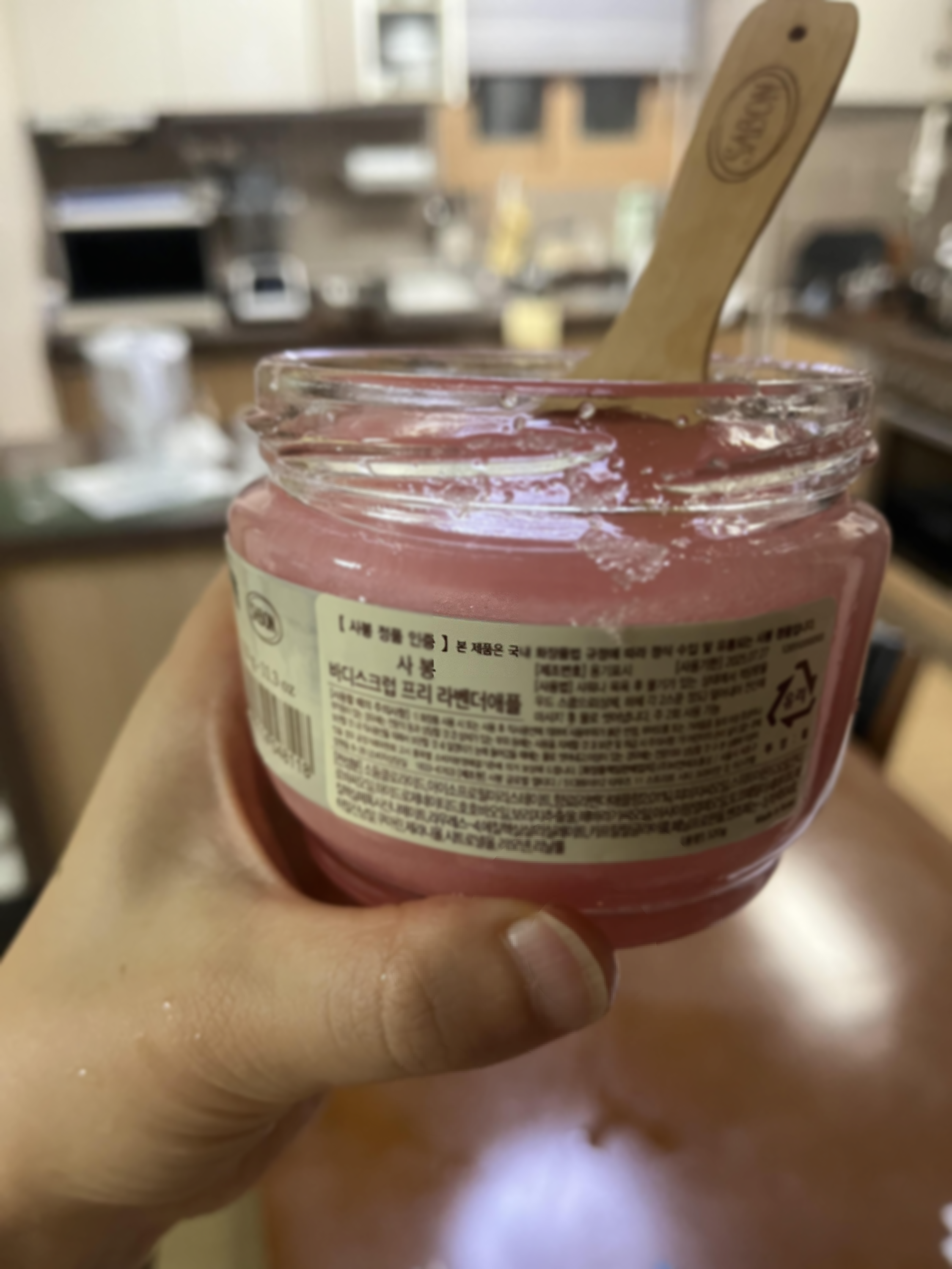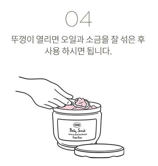 사봉의 바디 스크럽은 자연유래성분이 98% 함유되어 있는 비건 제품이라고 하네요.. 안의 내용물은 사해 소금과 4가지 식물성 오일의 조합이라고 몸에 마구 사용해도 안심이 됩니다.^^