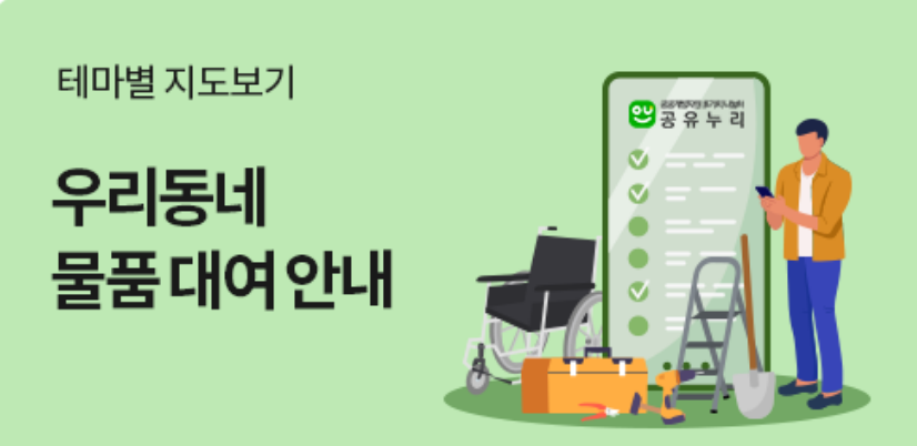 출처-공유누리 홈페이지 공유누리는 이외에도 이용가능한 공공자원이 풍부합니다. 다만 무료와 약간의 유료가 함께 있으니 내가 필요한 자원을 적절한 자원을 검색하셔서 이용하신다면 많은 도움이 되실 것 같습니다. 특히나 가끔 사용해서, 또는 짧게 사용해서 구매하기 애매한 물건들은 대여하여 사용하시면 똑똑한 소비를 하실 수 있을 것 같습니다. 아이 장난감, 휠체어, 캠핑용품 등이 제 눈을 끌더라고요. ^^