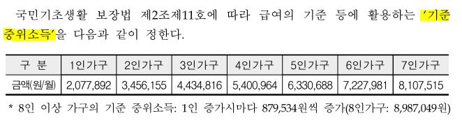 중위 소득 기준은 아래와 같으며, 보다 자세한 사항은 보건복지부 홈페이지를 참고하시면 됩니다.