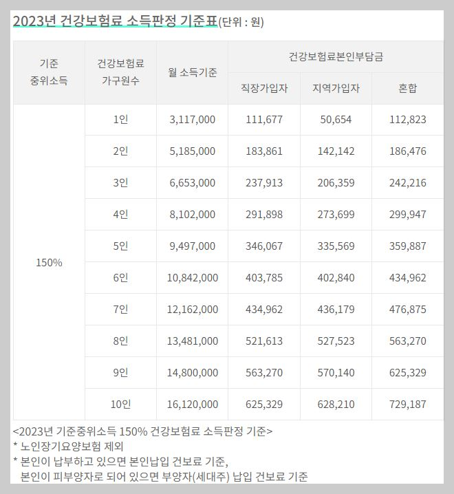 2023년 건강보험료 소득판정 기준표 신청일 및 신청방법