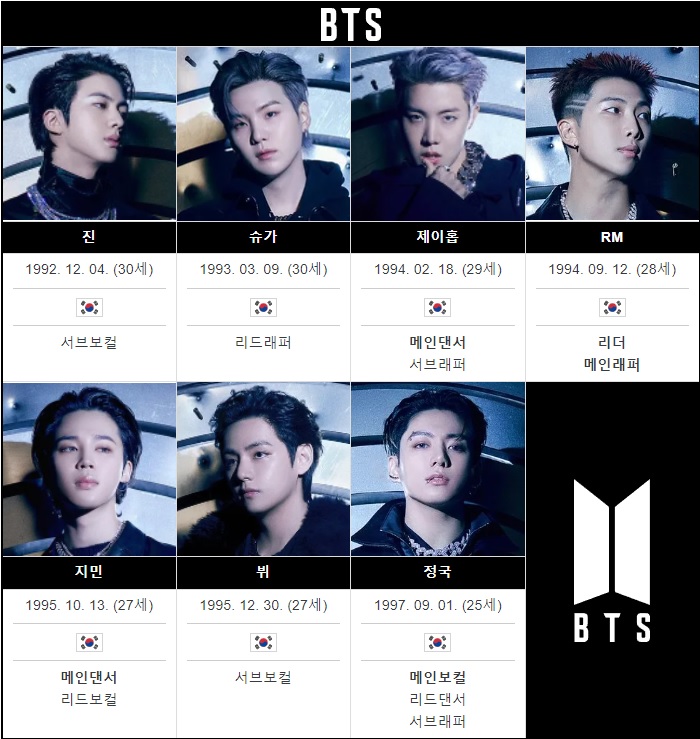 방탄소년단 멤버(출처-나무위키)