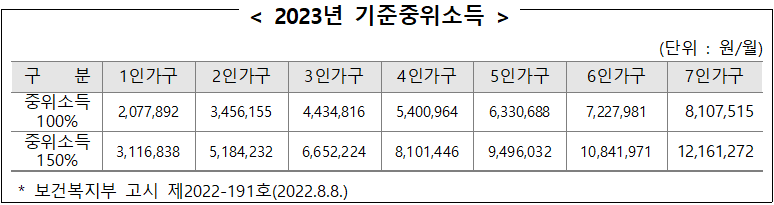 - 소득기준 : 기준 중위소득 150% 이하