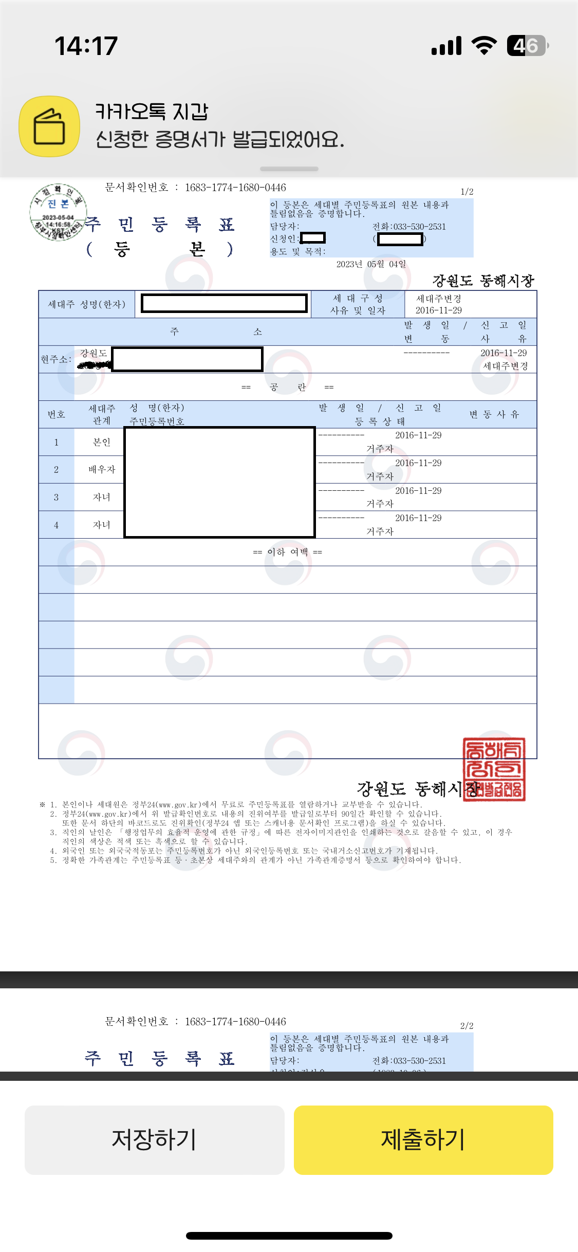 2. 카카오톡에서 주민등록등본 발급받는 방법