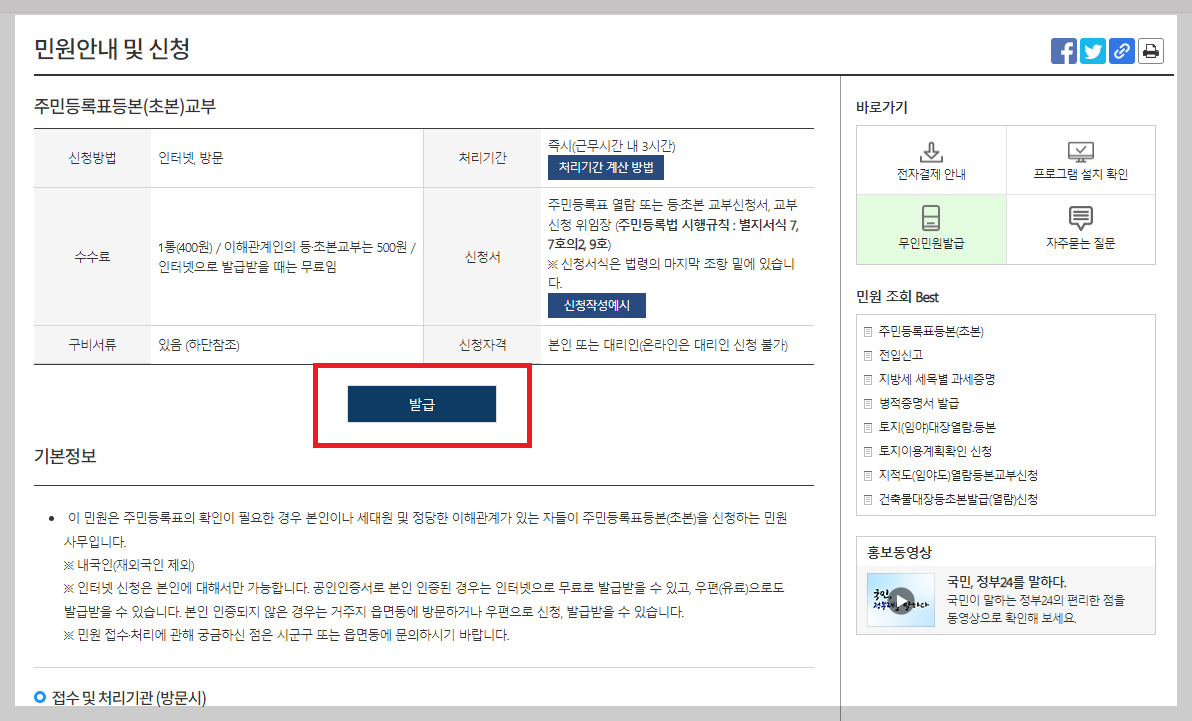 정말 손쉽게 주민등록등본이 발급됩니다.